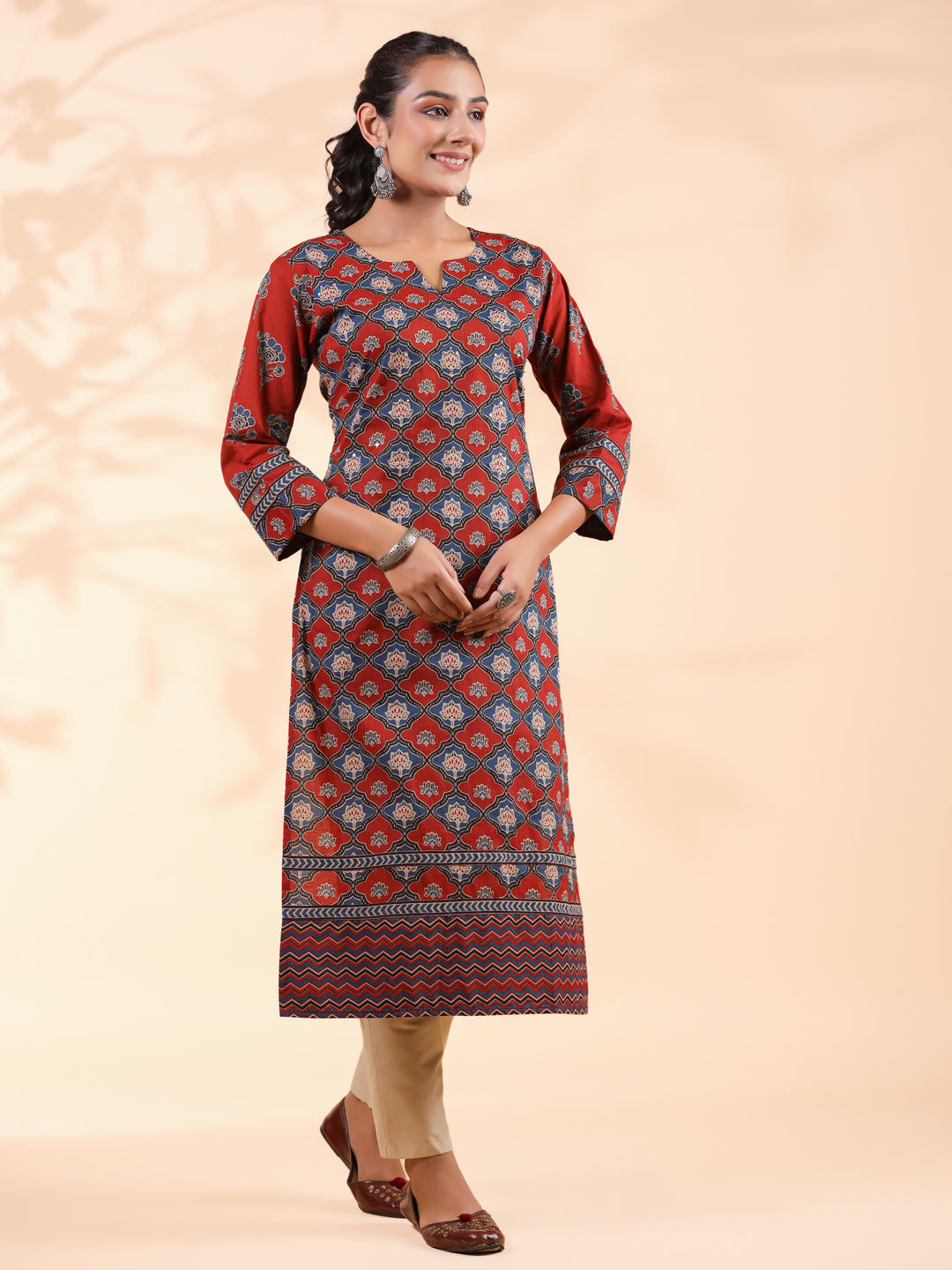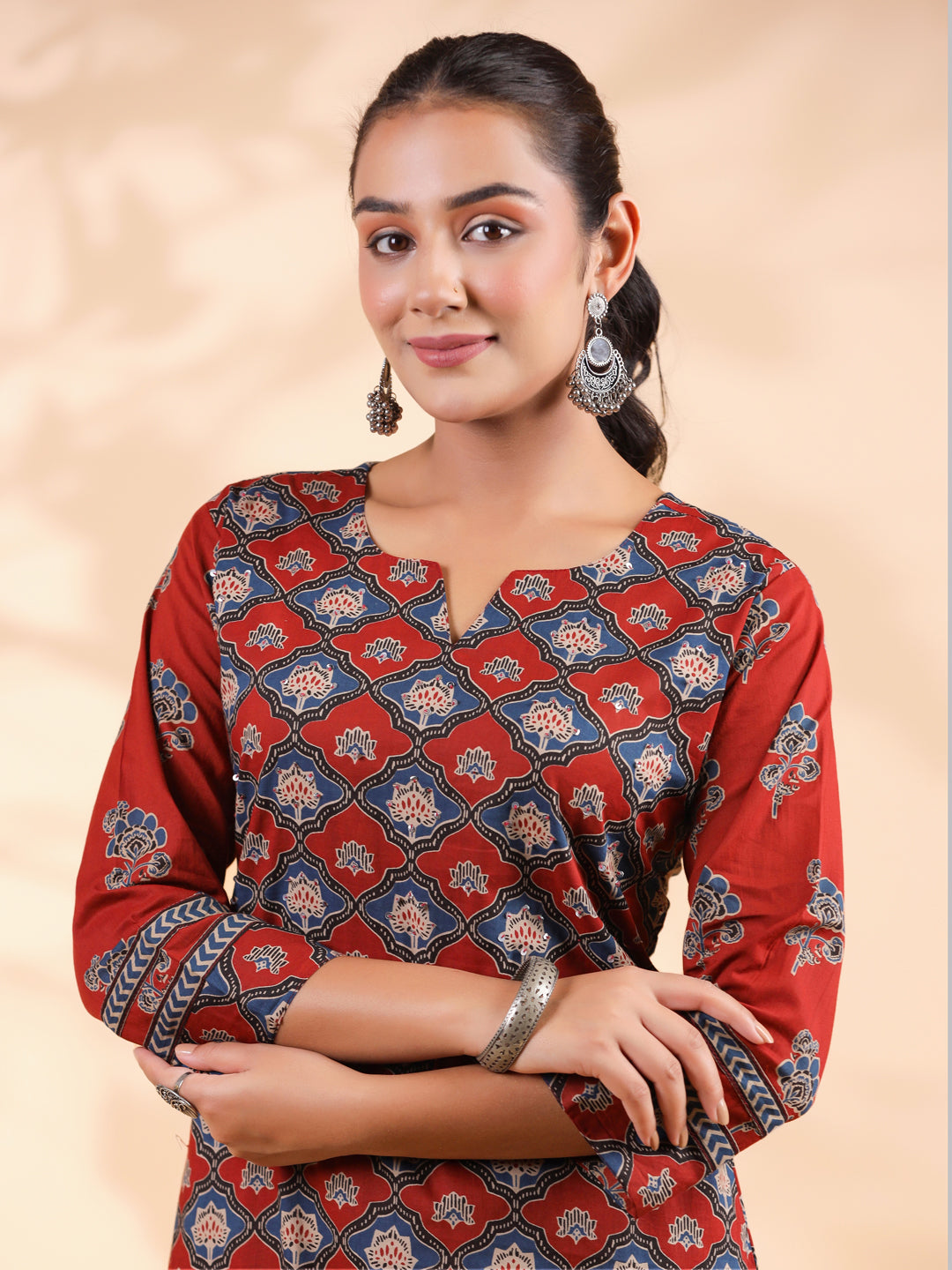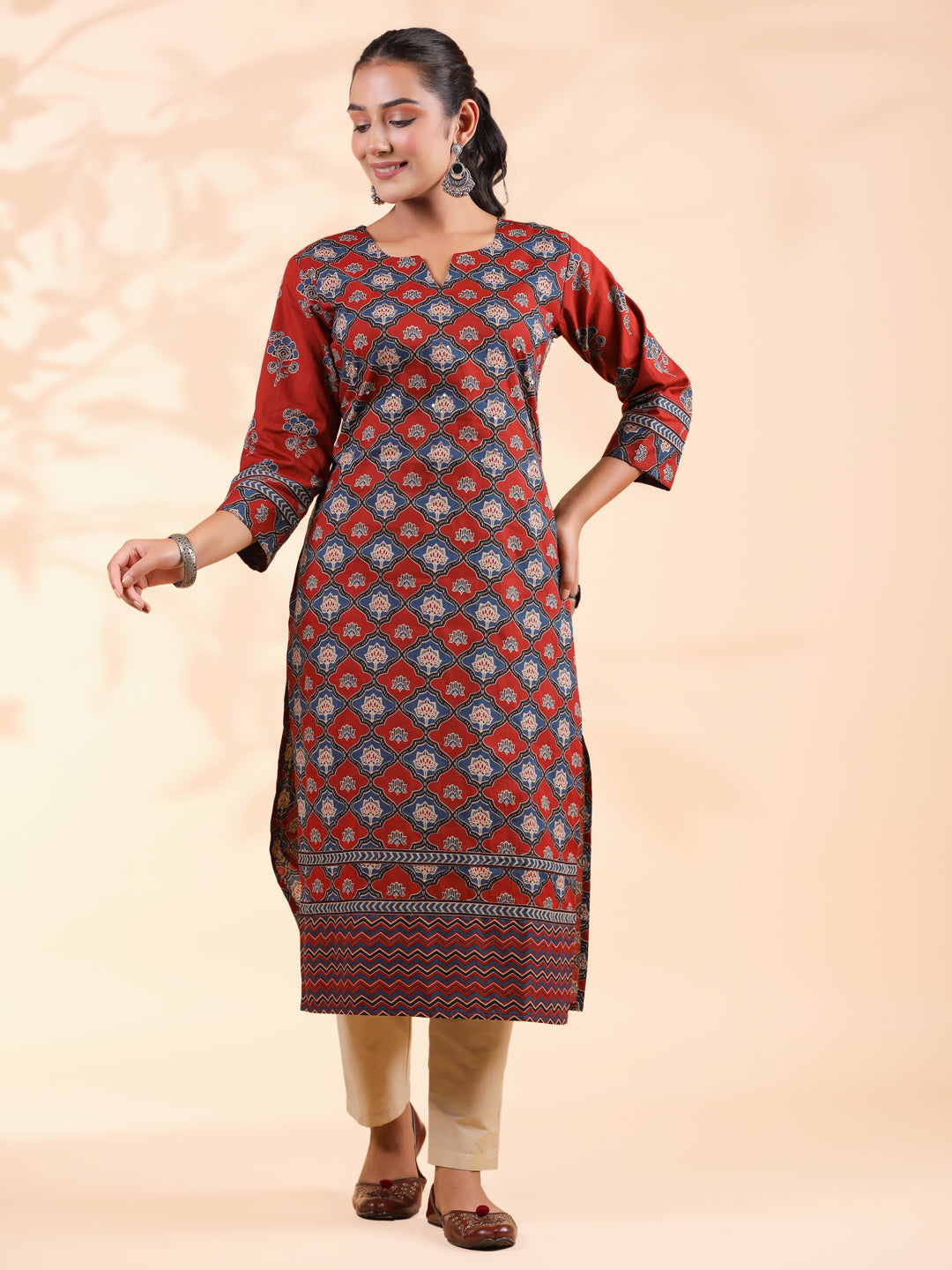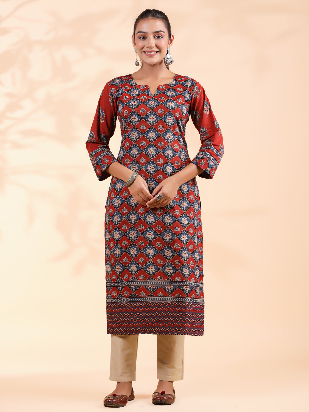 This Red Floral Print Kurta is perfect for any occasion. Made with high-quality cotton, it combines comfort and style. The vibrant red floral print adds a pop of color to any outfit. And with its straight cut, it flatters any body type. Stay stylish and comfy with this kurta!(Wouldn't be caught dead without this kurta!)