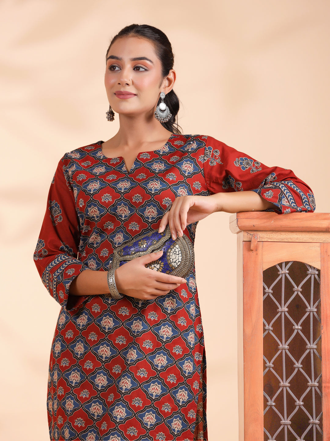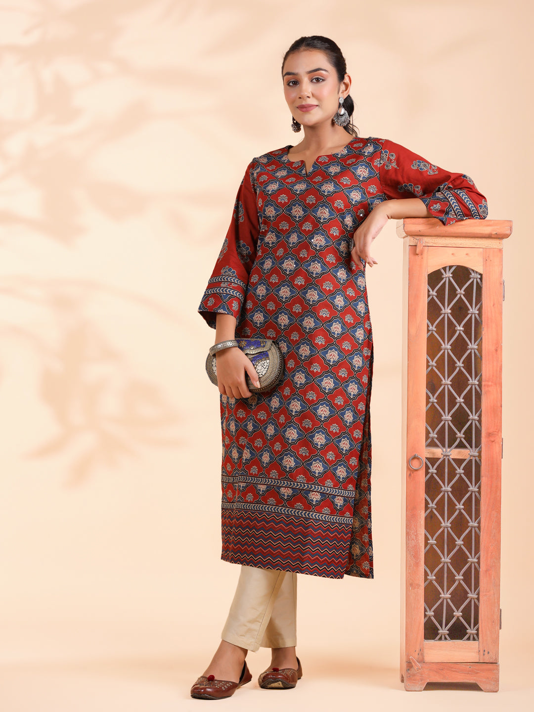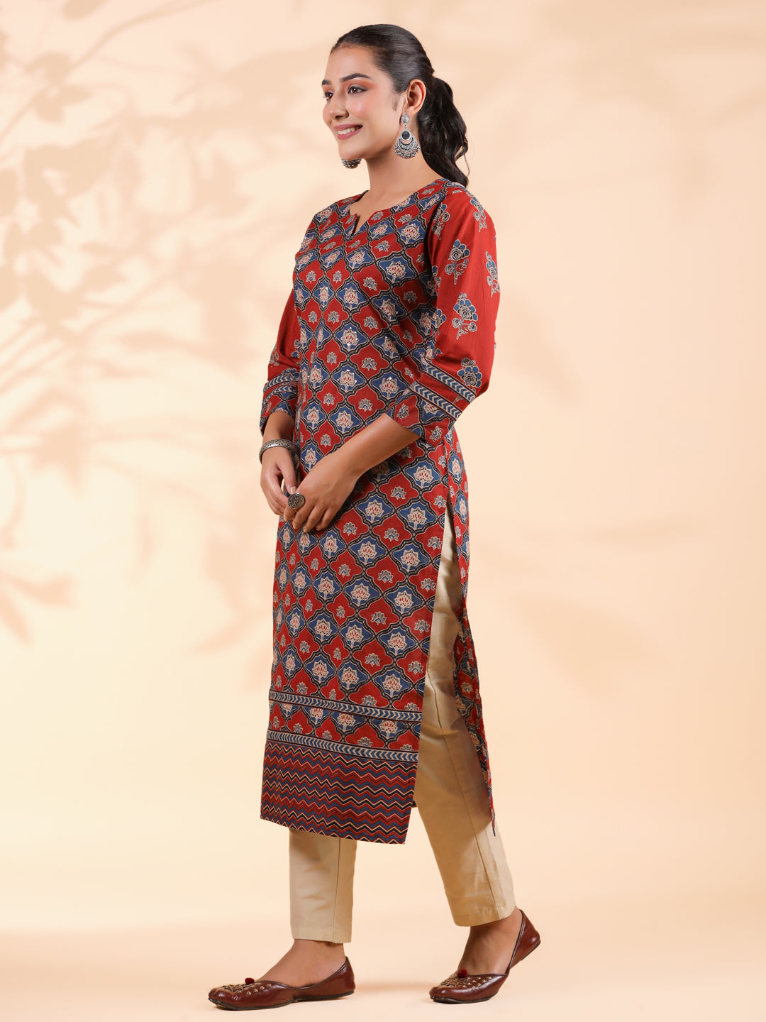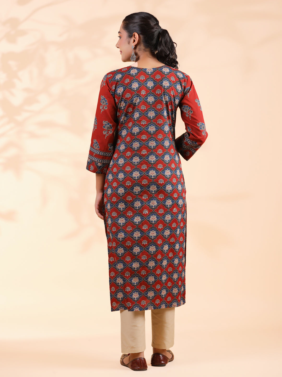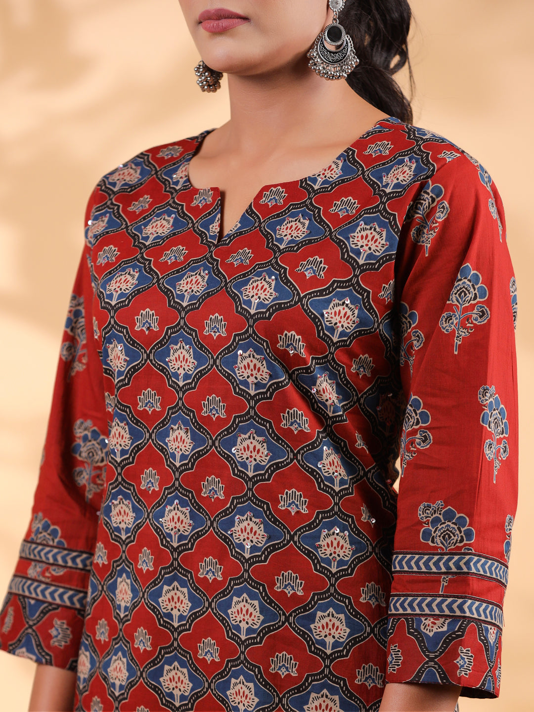 This Red Floral Print Kurta is perfect for any occasion. Made with high-quality cotton, it combines comfort and style. The vibrant red floral print adds a pop of color to any outfit. And with its straight cut, it flatters any body type. Stay stylish and comfy with this kurta!(Wouldn't be caught dead without this kurta!)