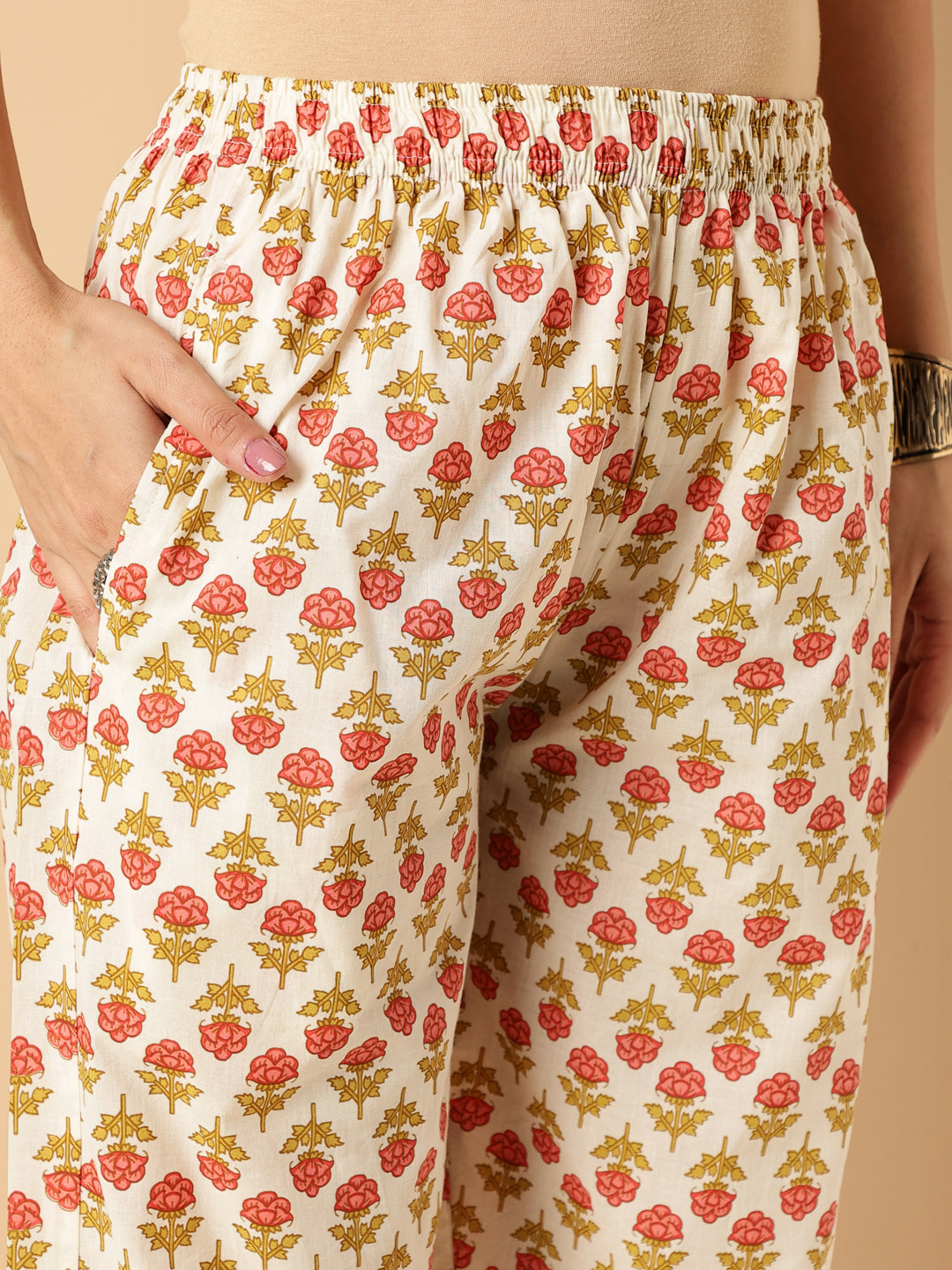 Unleash your playful side with our Red Floral Print With Printed Lace Straight Cotton Kurta Set. This quirky and stylish set features a vibrant red floral print and delicate lace details, perfect for adding a pop of fun to your wardrobe. Made with soft and breathable cotton, it's comfortable to wear all day long. Elevate your style with this unique and fun kurta set!