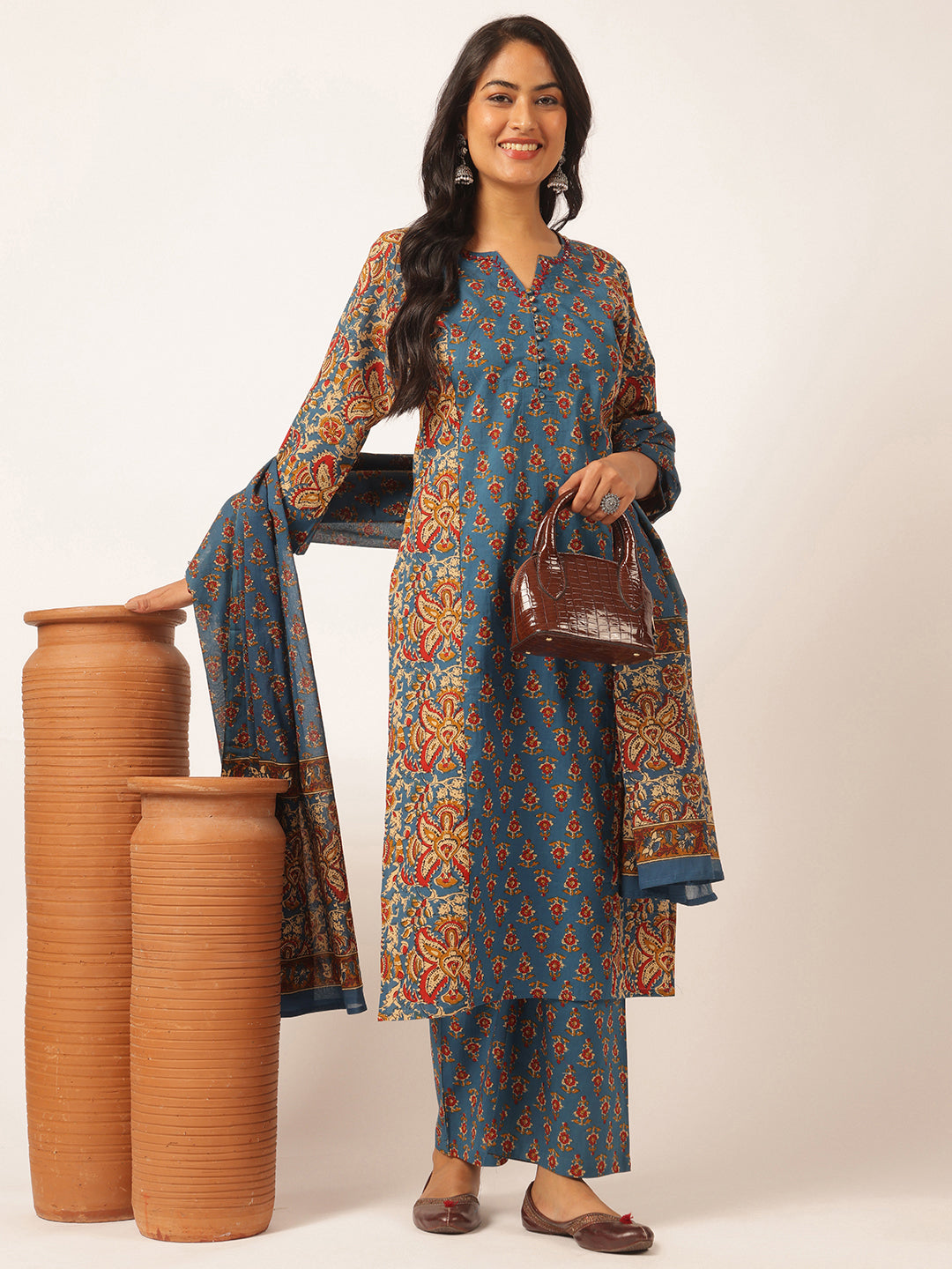 Introducing our regal Royal Blue Cotton Floral Print Straight Kurta Set! Made from soft, breathable cotton, this set is perfect for any occasion. Its vibrant floral print adds a touch of whimsy to the simple, straight kurta. Feel effortlessly elegant in this must-have set.