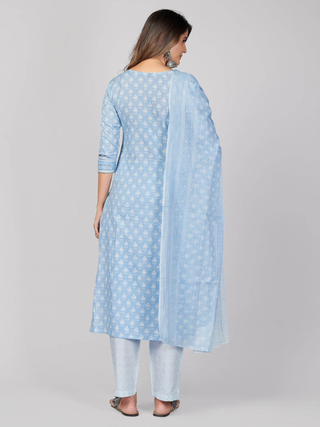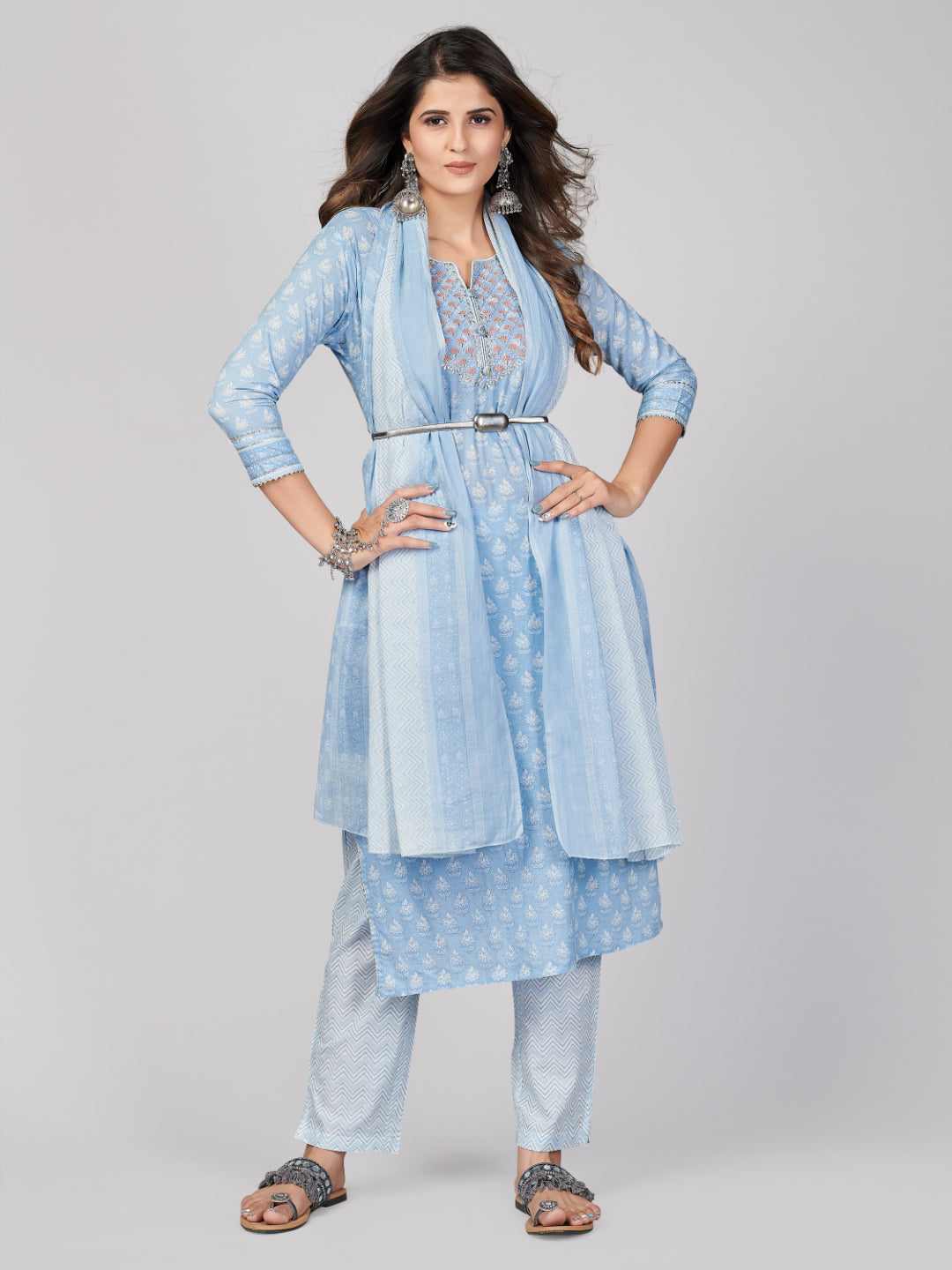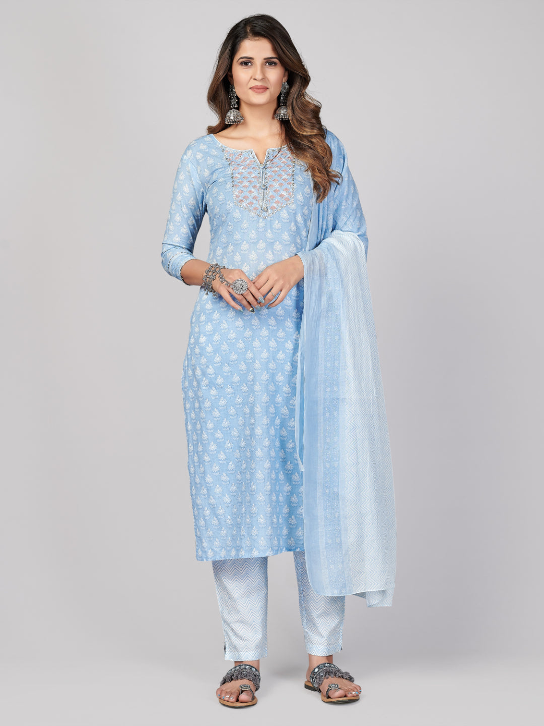 Look beautiful in this sky blue straight cotton kurta set that is perfect for casual and office wear. Its delicate embroidery and fine details will bring out your elegant side, while its comfortable cotton fabric will make sure you stay cozy all day long! Get ready to feel confident and comfortable no matter what the occasion.