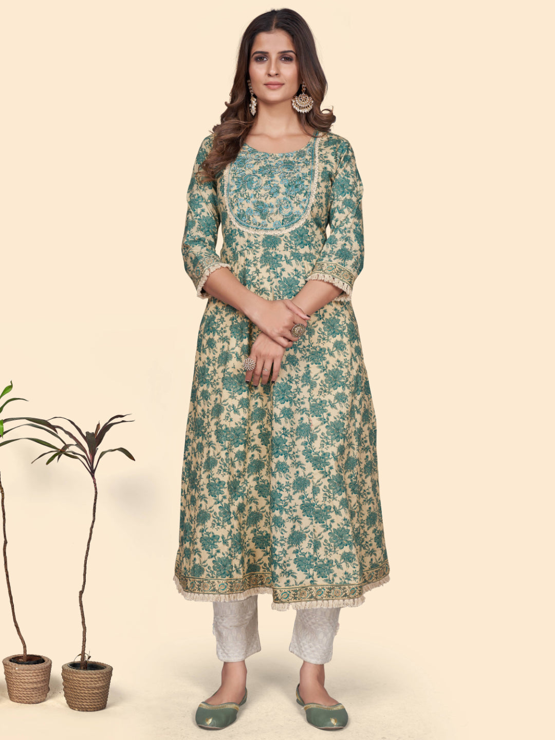 Beige Color Cotton A-Line Kurti