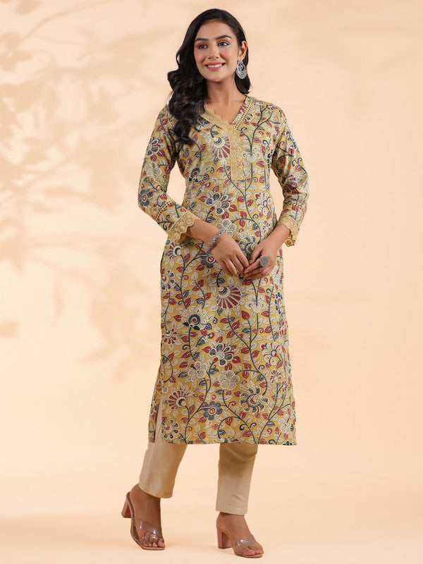 Get ready to rock the summer with the Vbuyz Women's Floral Print Straight Cotton Beige Stitched Kurta. Made of soft cotton and featuring a beautiful floral print, this kurta is perfect for both casual and special occasions. Its straight cut provides a comfortable fit and effortless style. Order yours today!