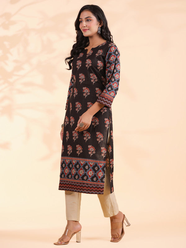 Add some floral fun to your wardrobe with the Vbuyz Women's Floral Print Kurta. Made from soft and breathable cotton, this black kurta features a playful and quirky floral print. The straight fit adds a touch of elegance to this casual piece. Perfect for a day out or a casual outing, this kurta is a must-have for every fashion-forward woman!