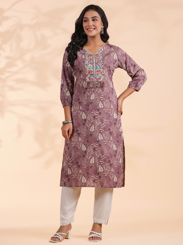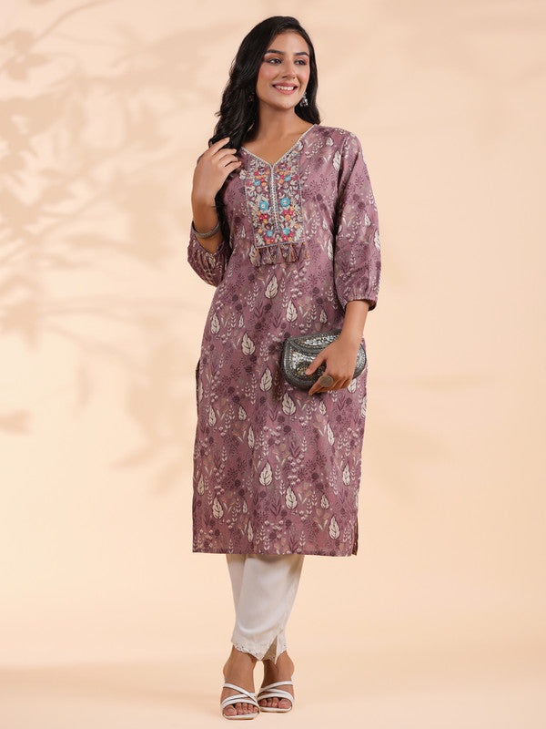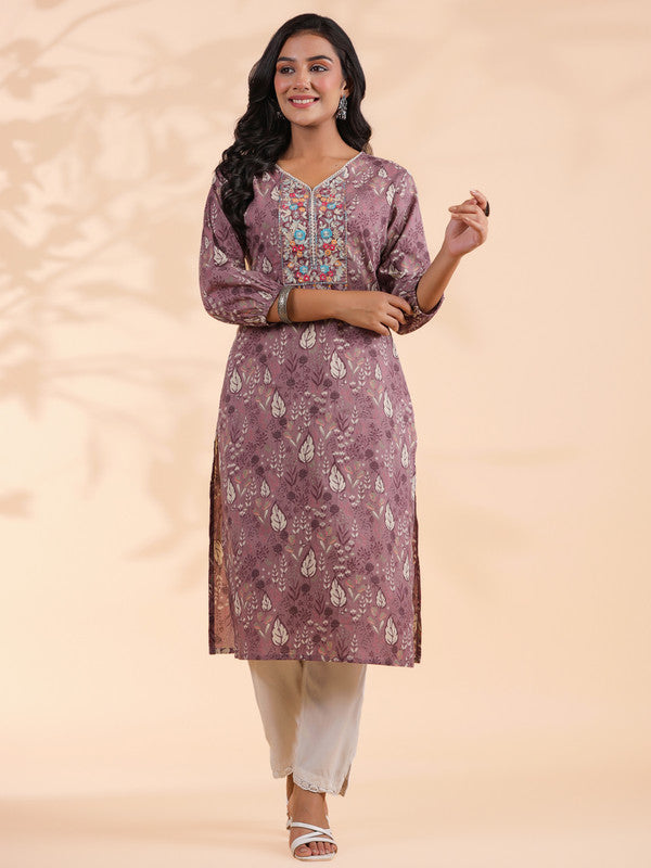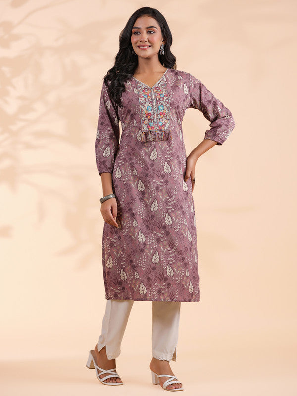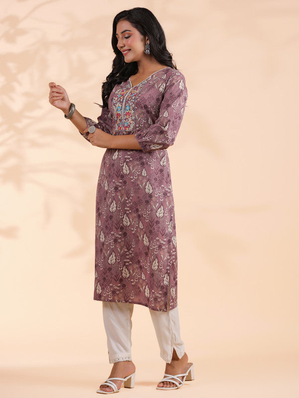 Embroidered Straight Rayon Purple Kurti