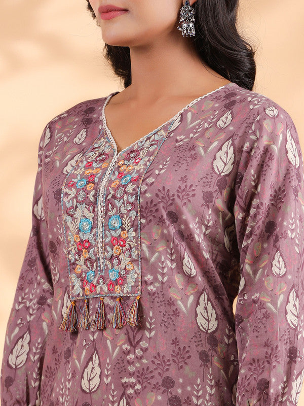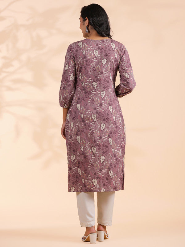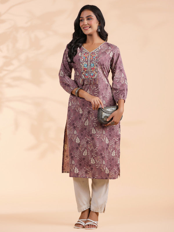 Lavender Floral Print Straight Cotton Stitched Kurta