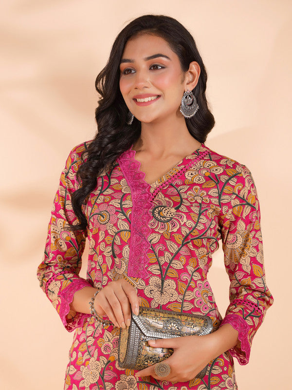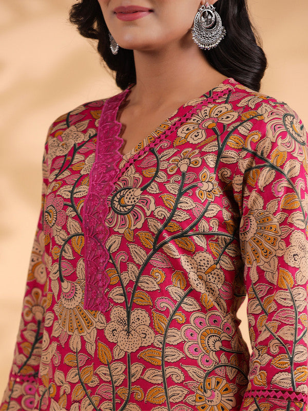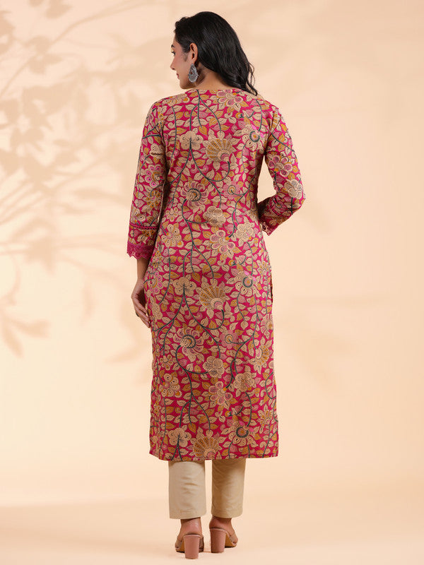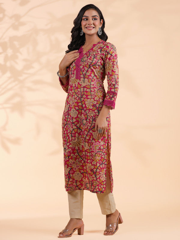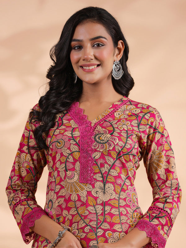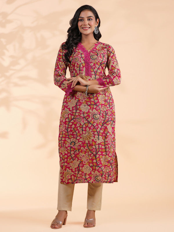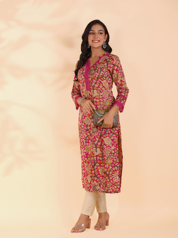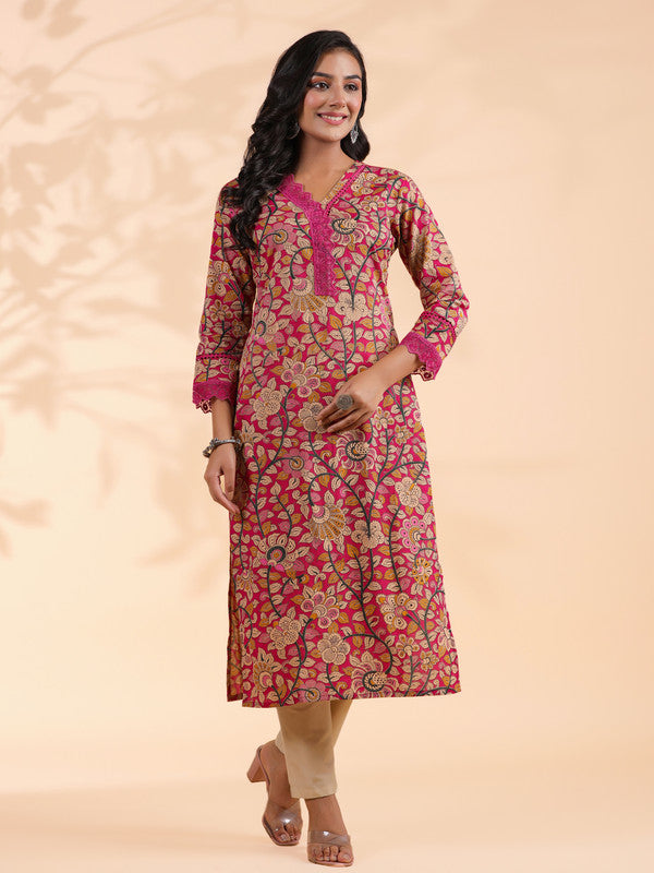 Introducing the Vbuyz Women's Floral Print Straight Cotton Pink Stitched Kurta! This unique kurta features a beautiful floral print and is stitched from soft cotton for all-day comfort. Perfect for adding a touch of quirkiness to your wardrobe.