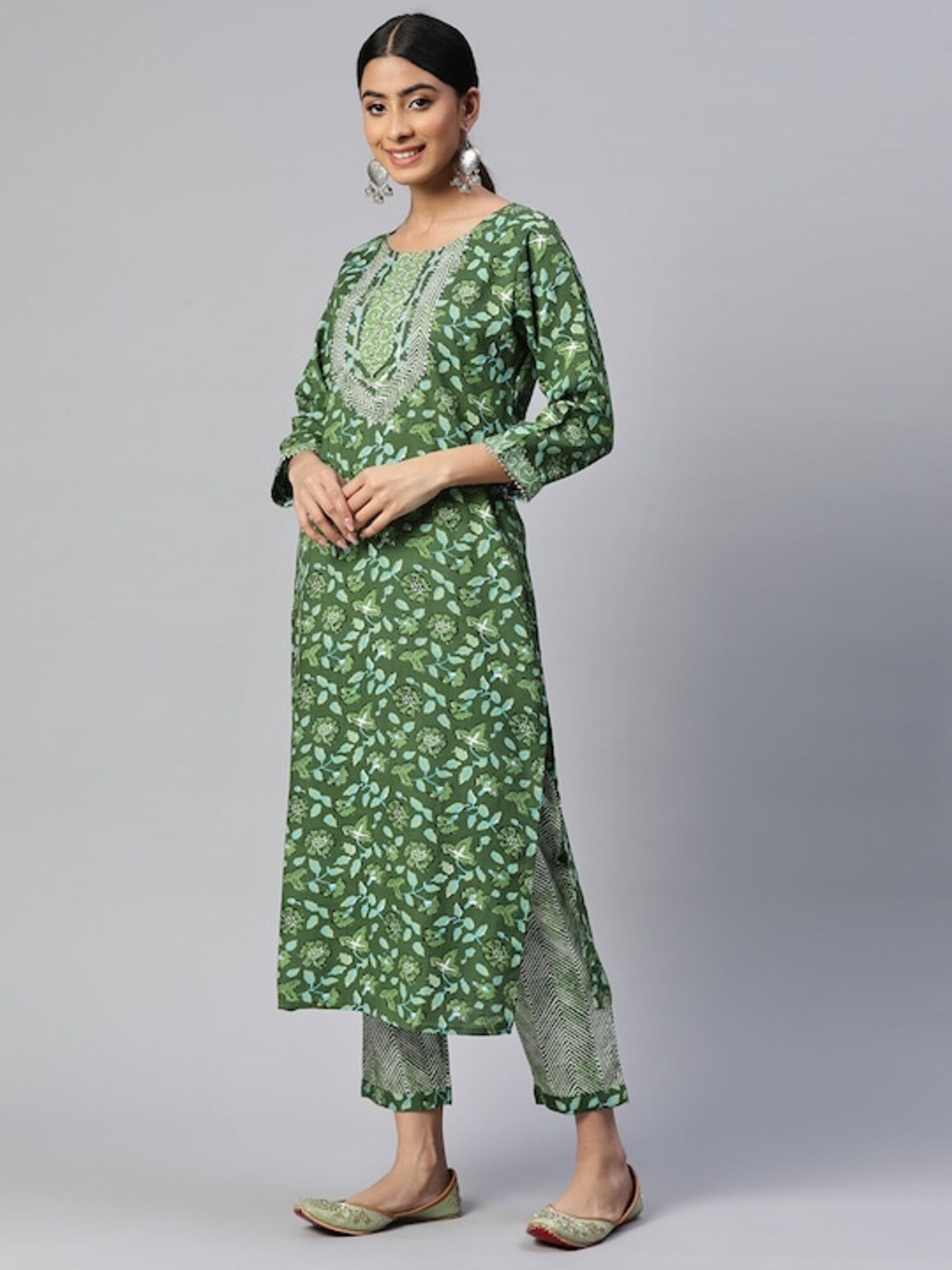 Green Straight Cotton Kurta Set