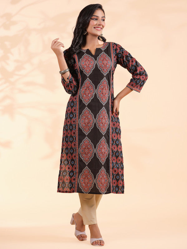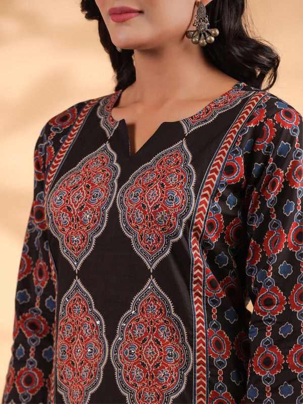 Get ready to turn heads with Vbuyz's Women's Sequence Work Straight Cotton Black Stitched Kurta! Made with high-quality cotton, this kurta features stunning sequence work that will elevate any look. Perfect for work or a night out, this kurta combines style and comfort effortlessly. Don't miss out on this must-have piece!