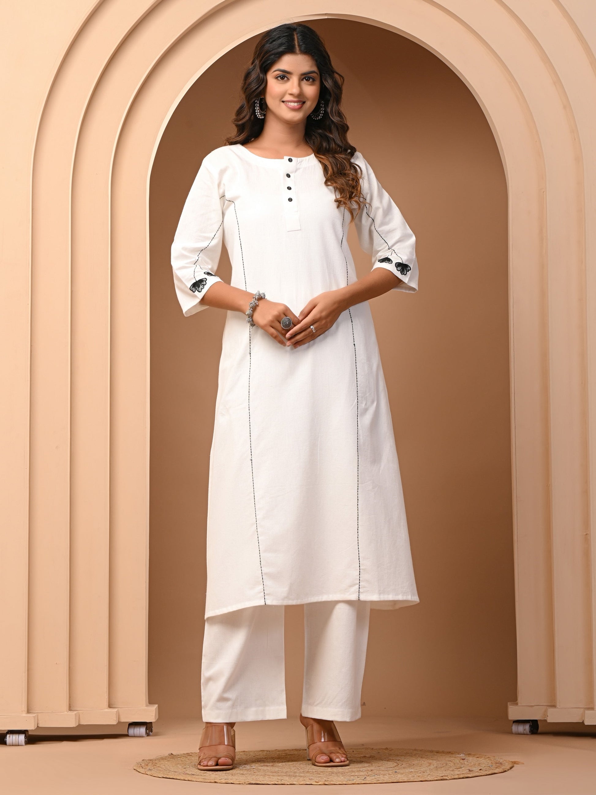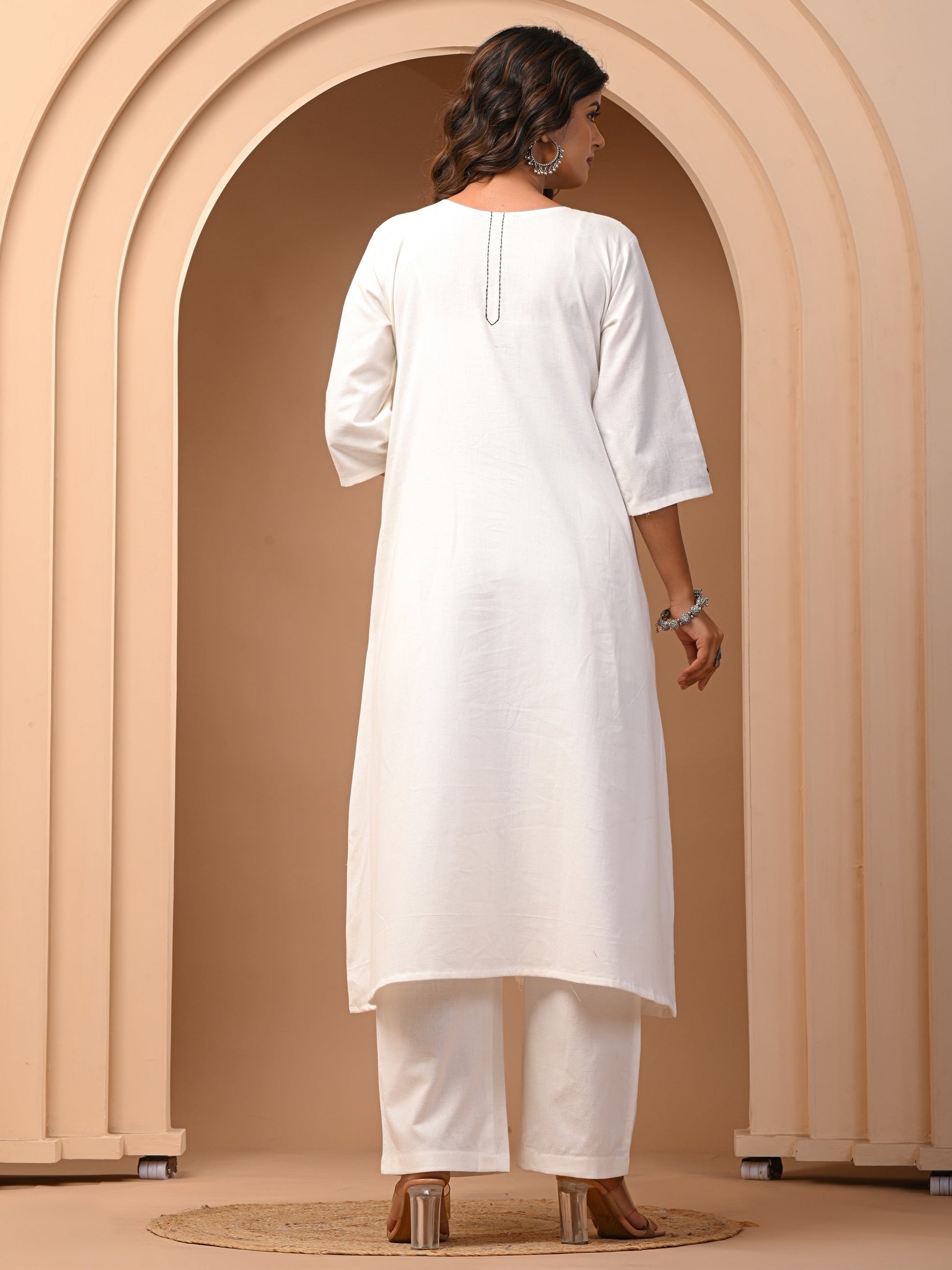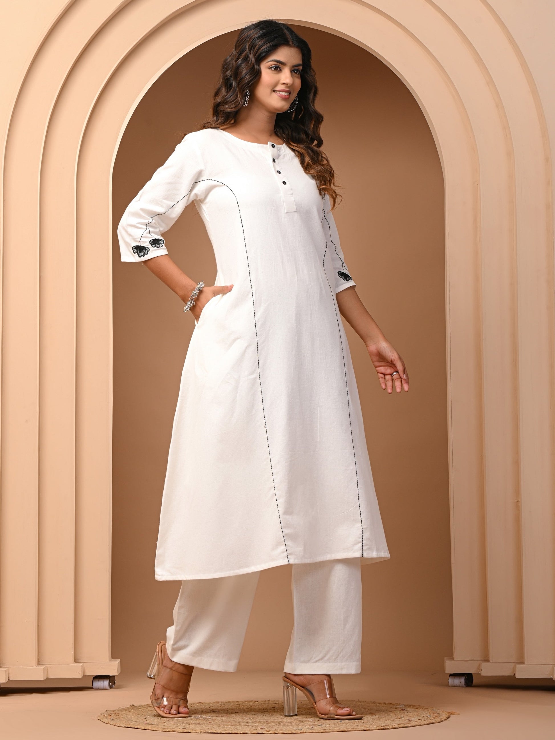 Effortlessly elevate your wardrobe with our White A-Line Cotton Flex Kurta with Pant. Made from high-quality, breathable cotton flex, this set offers a comfortable and stylish option for any occasion. The A-line silhouette and included pant add a touch of sophistication while keeping you cool and trendy.