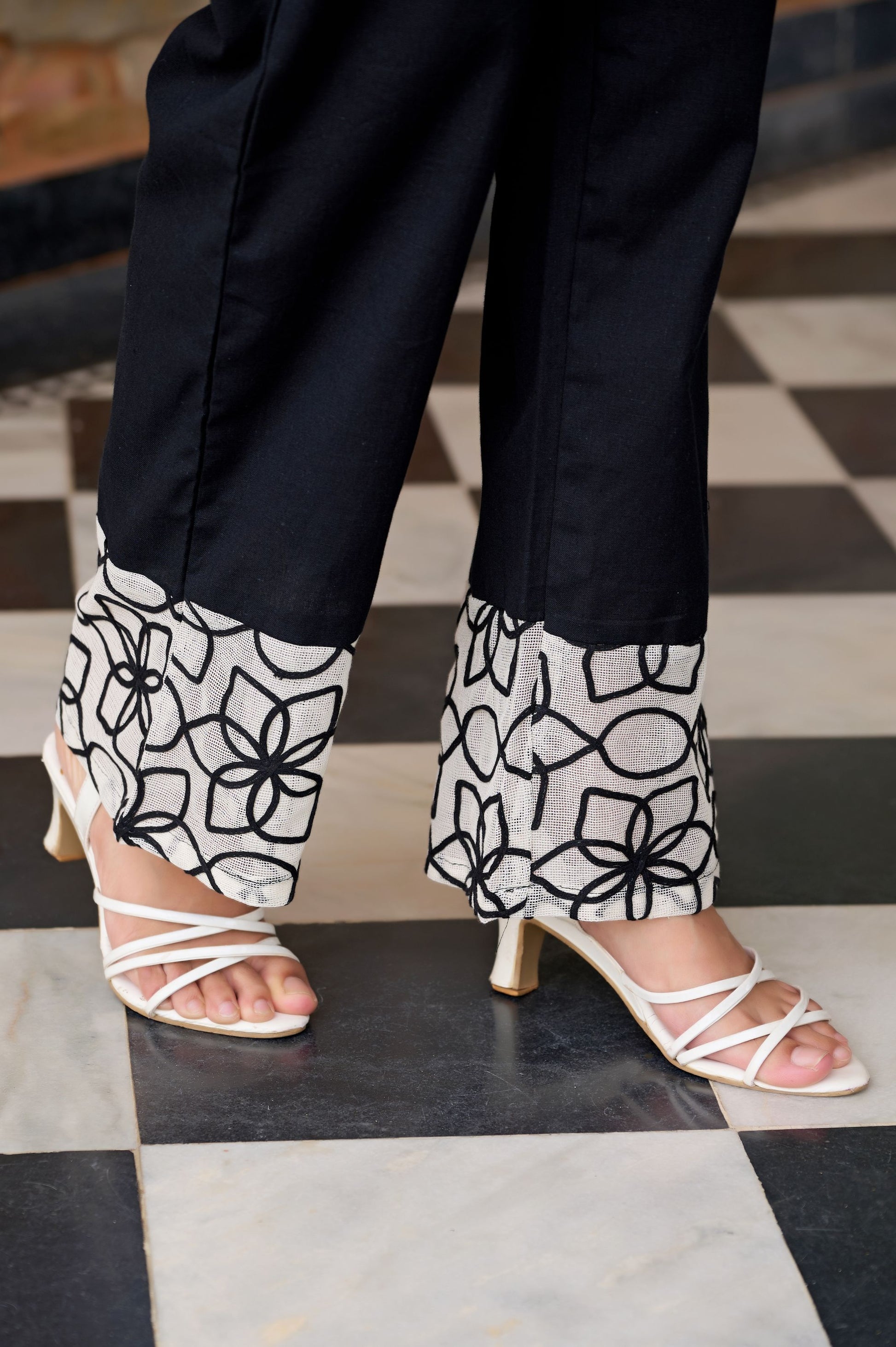 White & Black Floral Print Straight Cotton Flex Stitched Co-Ord Set Elevate your casual wardrobe with this sophisticated co-ord set featuring a striking white and black floral print. Crafted from premium cotton, this two-piece ensemble offers exceptional comfort and breathability for all-day wear. The flex stitching technology ensures durability while maintaining a flattering fit through movement. The straight silhouette provides a clean, contemporary aesthetic that transitions seamlessly from everyday occasions to casual gatherings. Perfect for those seeking versatile, quality basics that combine style with practical comfort.