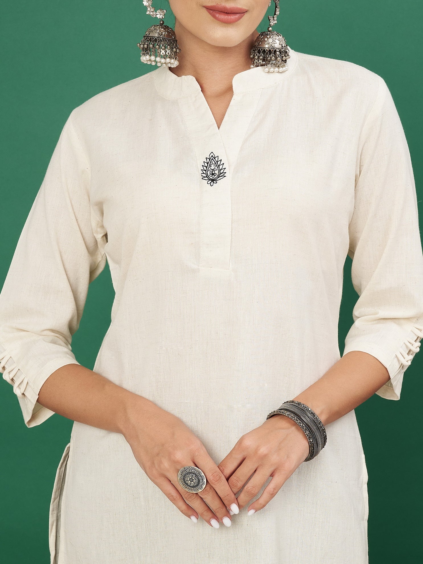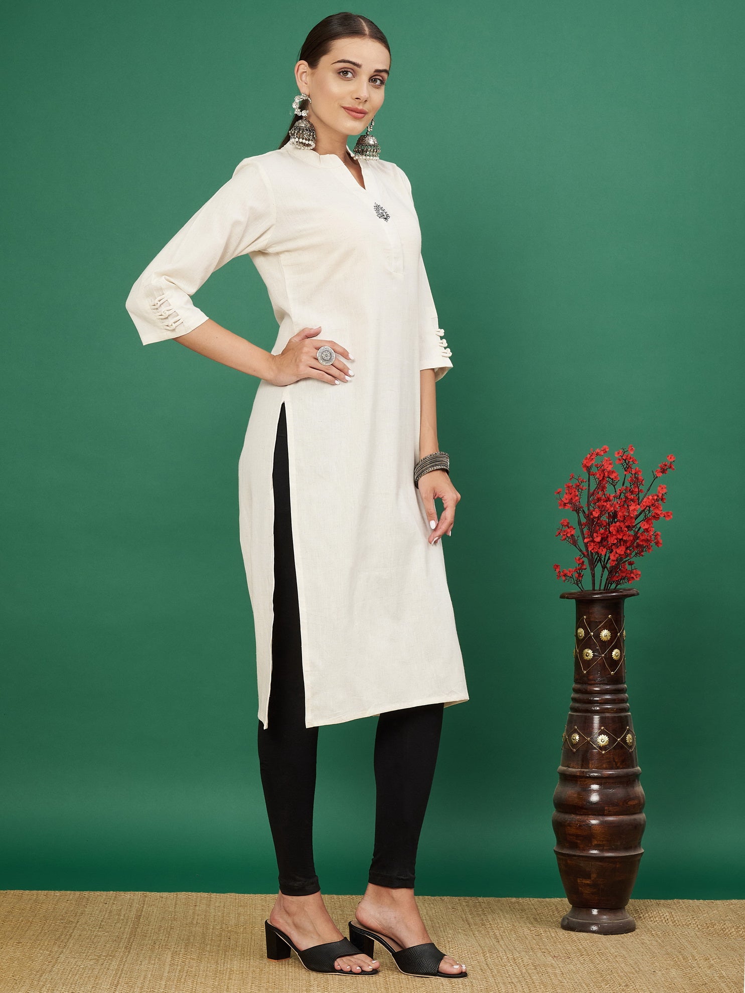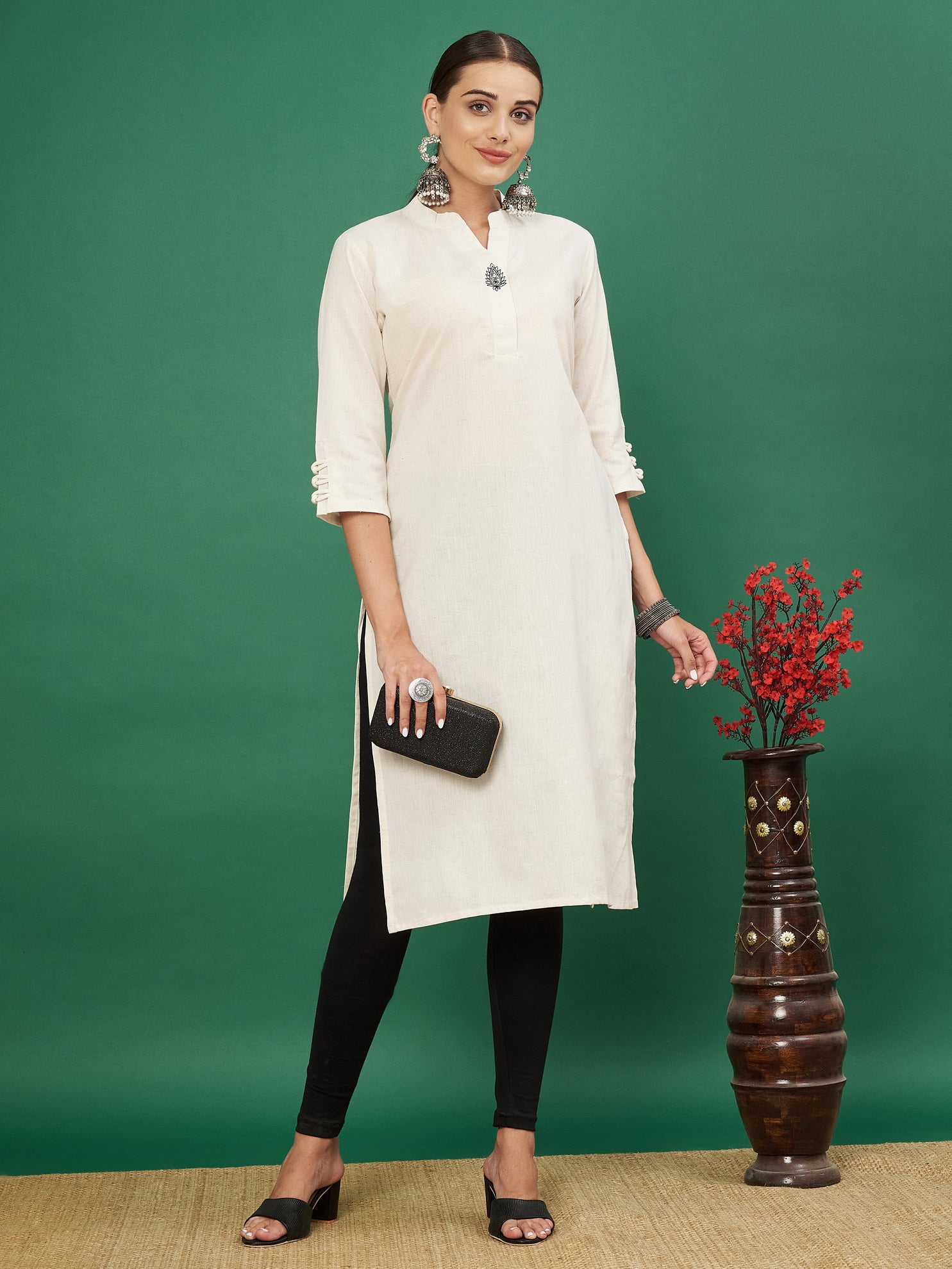 Introducing our White Cotton Flex Straight Kurta! Made with lightweight, breathable cotton flex material, this kurta is perfect for keeping you cool and comfortable during the hot summer months. The straight cut and versatile white color make this kurta a stylish and easy addition to any wardrobe. (Cool down in style with our White Cotton Flex Straight Kurta!)