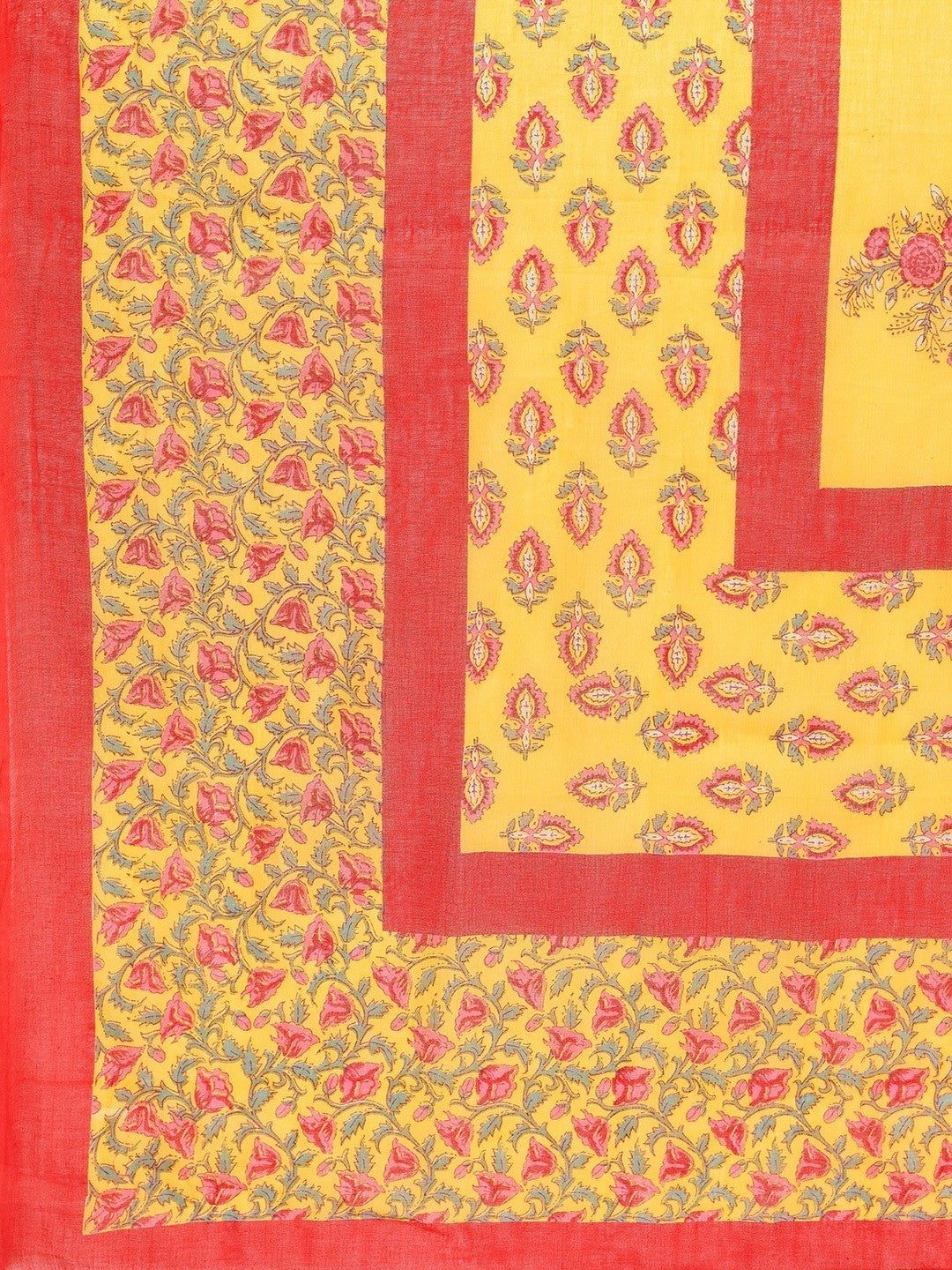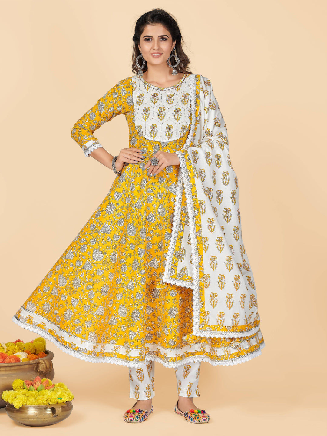 Yellow Embroidered Anarkali Cotton Kurta Set