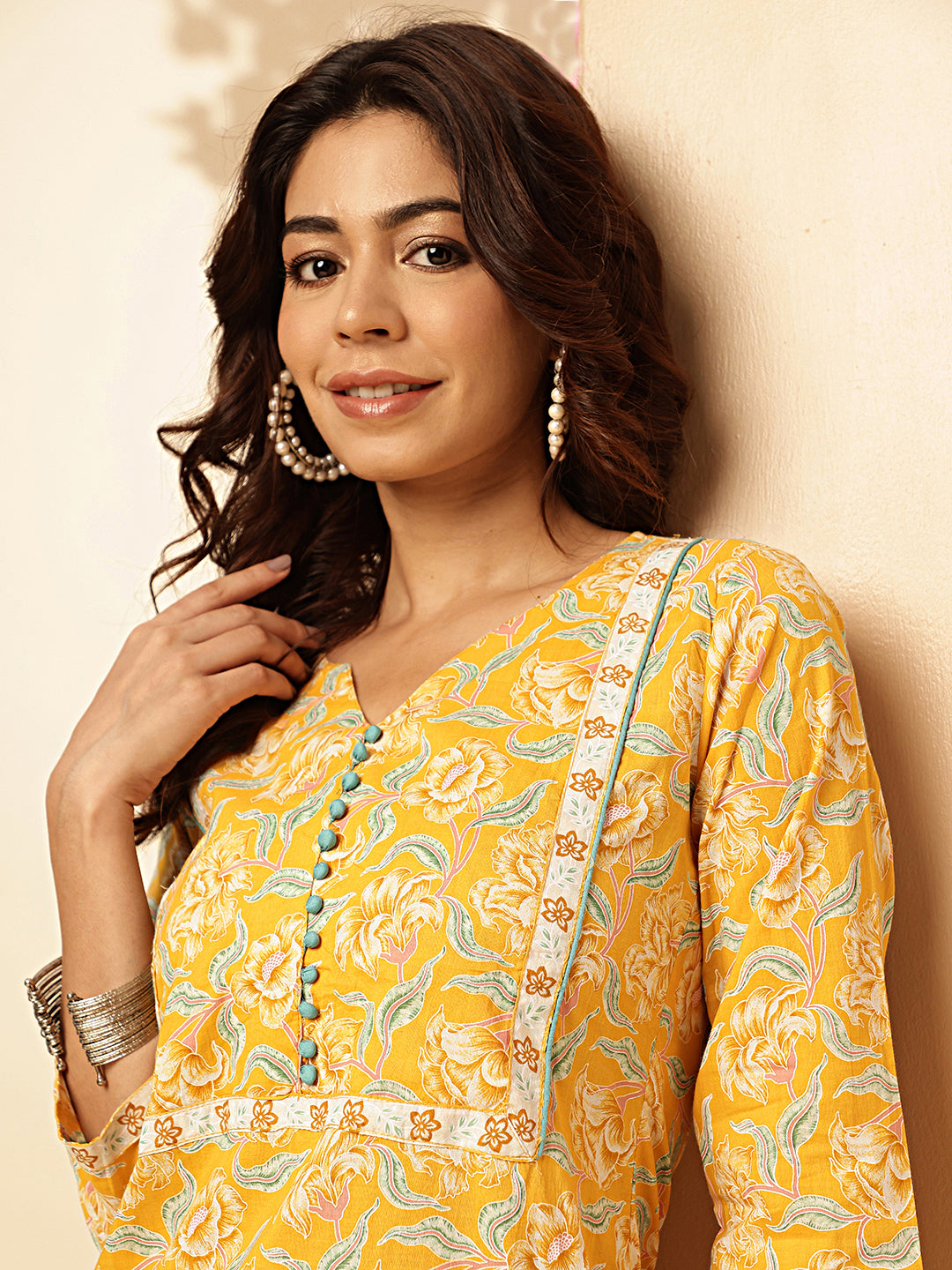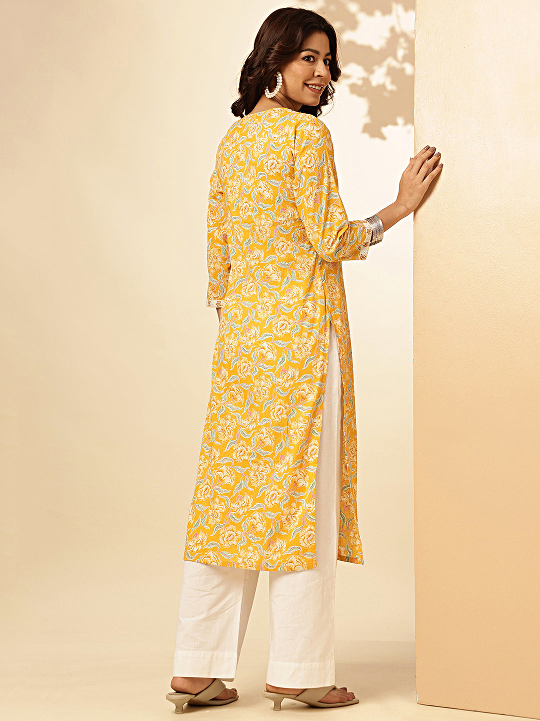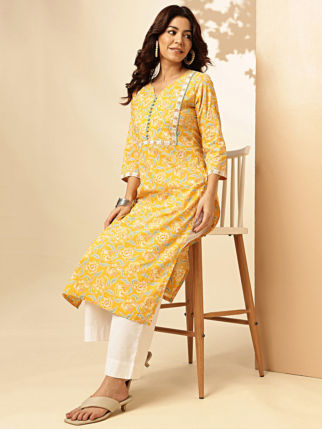Get ready to bloom with this Yellow Floral Print Straight Cotton Stiched Kurta! Made with soft and breathable cotton, this kurta is perfect for any occasion. The vibrant yellow floral print adds a touch of whimsy to this otherwise simple design. (No need to be shy, this kurta will make you stand out in style!)