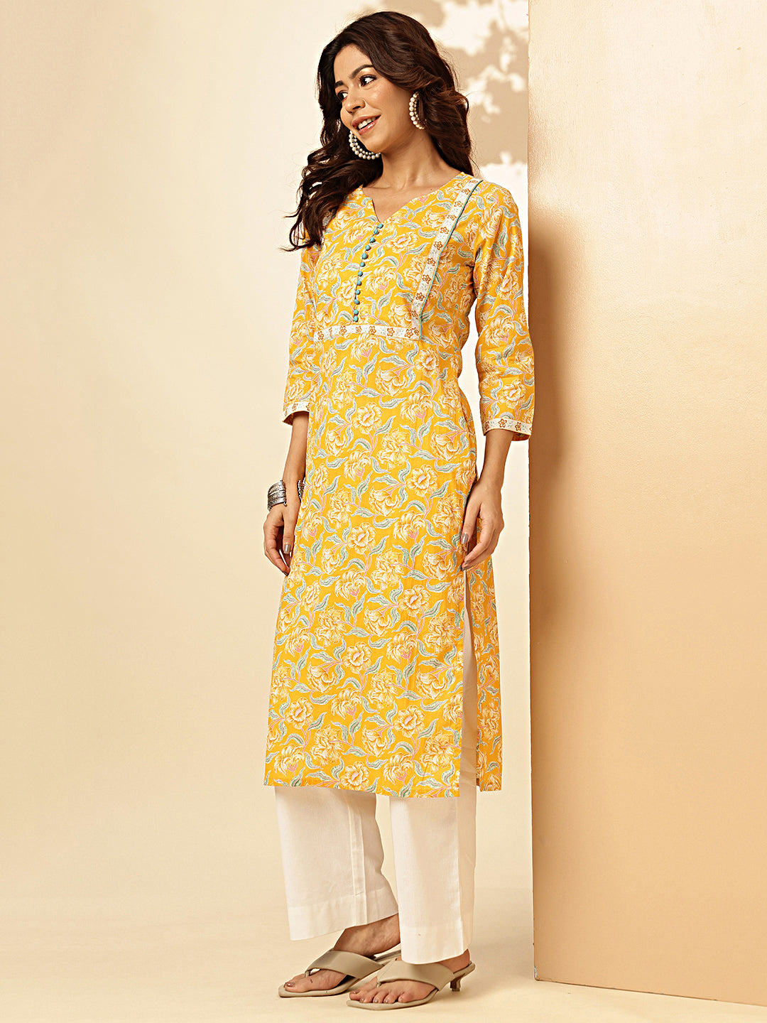 Yellow Cotton Straight Kurti